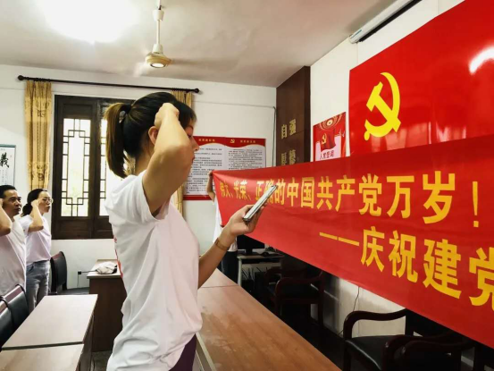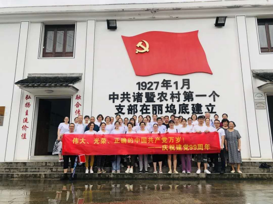 为纪念建党99周年,深入学习贯彻习近平新时代中国特色社会主义思想和习近平总书记在浙江考察时关于建设“重要窗口”的讲话精神,扎实推进“不忘初心、牢记使命”常态化制度化,激励全校广大党员干部充分发挥战斗堡垒和先锋模范作用,根据上级文件精神,绍兴护士学校党总支部决定在“七一”前后组织开展纪念中国共产党成立99周年系列活动。具体由校党办负责制定方案及实际安排完成操作如下:一是围绕“悟初心、担使命、见行动”主题,组织全体党员于6月27日赴中共诸暨市第一个农村党支部成立地——同山镇丽坞底村通过重温入党誓词、开展党史国史教育等形式,组织党员学习党的历史,从中汲取营养,深刻领悟践行初心使命。二是以习近平新时代中国特色社会主义思想为指导,结合习近平总书记在浙江考察时关于建设“重要窗口”的讲话精神和全国“两会”精神,由总支寿菲委员为同志们上了一次专题党课。三是以“亮旗”行动为载体,以“先锋微家”为抓手全面参与“五星”系列创建活动。学校全体在职党员“两地报到、双岗服务”,依托“先锋微家”平台,深入本人现居地社区一线,积极认领微心愿,卡点志愿服务等形式为基层送服务、解难题。四是进行了一次走访慰问活动。“七一”当天,总支委员赵小红领队慰问了建国前参加革命工作党龄超过六十周年的离休老干部汤和根同志。五是组织了全校60周岁以下所有党员6月30日前手机下载了西施号APP,利用此平台进行了党内知识和法规学习,每位同志都参加了一次知识测试,此举进一步提高广大党员的理论知识水平。