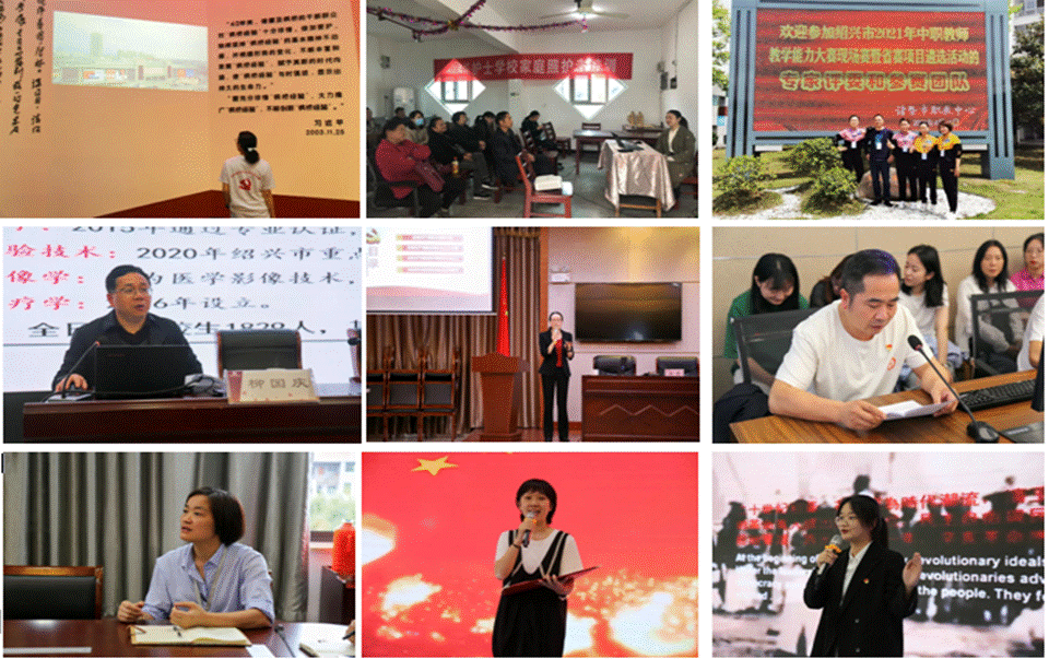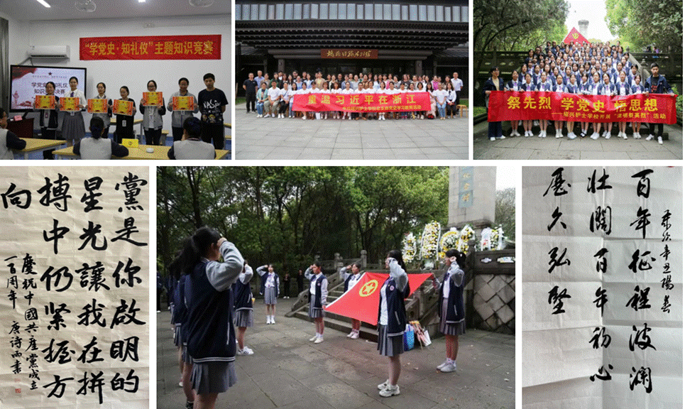 邀请绍兴文理学院副院长柳国庆来校做《仁术兼修,知行合一》为题的讲座,向全体师生阐述对党史学习教育的意义和目的;校领导班子每月上专题党课,进一步激发全校师生浓厚的爱党爱国热情。书记俞莉作为诸暨市巾帼宣讲团成员,受邀赴市交警大队宣讲党史;开展“传承红色基因,致敬百年荣光”师生讲党史比赛,18名老师和学生们同台诵经典,颂扬共产党百年伟绩。